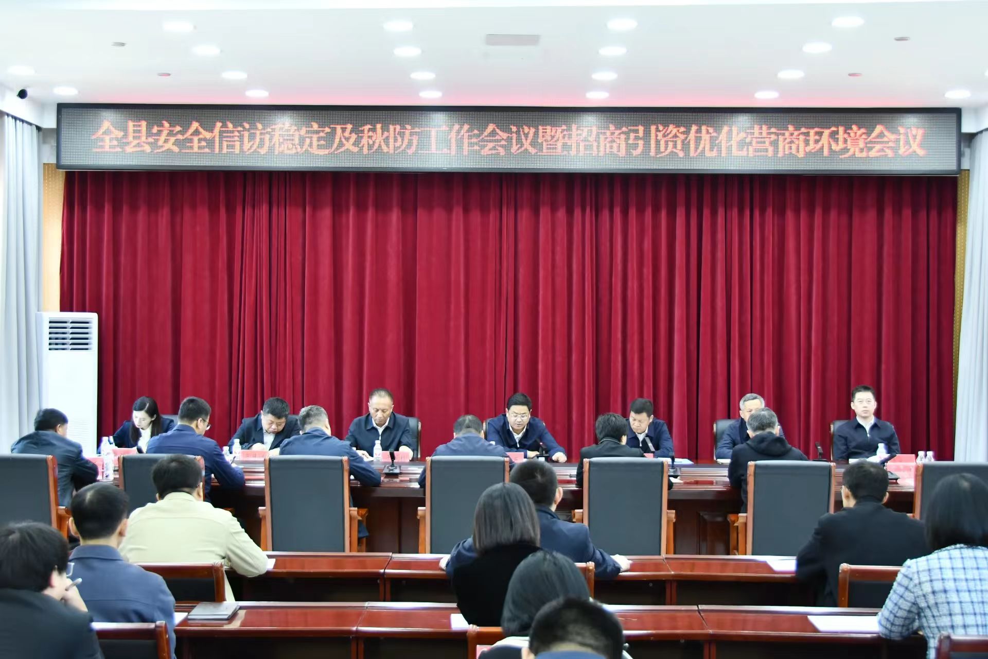 9月27日,全县安全信访稳定及秋防工作会议暨招商引资优化营商环境会议在机关大会议室召开。县委书记安东出席会议并讲话,县委副书记、县长孙兰松主持会议。会上,传达了省信访工作联席会议2024年第三次全体会议暨信访重点工作推进会议精神、全市安全信访稳定及秋防工作会议精神、全市招商引资会议精神及我县贯彻落实意见和省、市优化营商环境专项行动半年讲评会议精神,通报了2024年7月份以来全县信访工作情况、2024年7月份以来安全生产和秋防工作情况、2024年前三季度全县招商引资工作情况、2024年上半年全县优化营商环境专项行动考核情况。