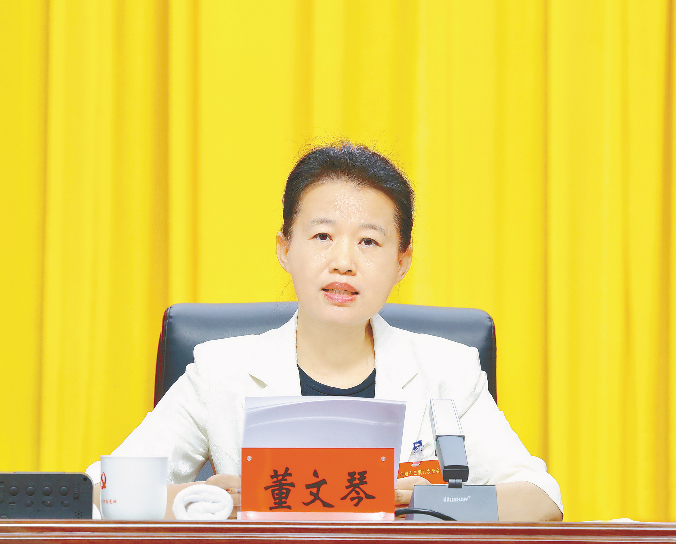 8月7日,中国共产党伊春市第十三届委员会第六次全体会议召开。市委副书记、市长董文琴讲话。