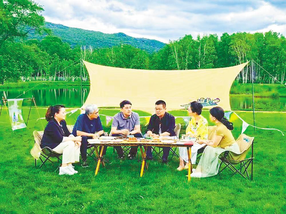 大家你一言我一语,或交流写作心得,或分享读书感受。一顶帐篷,一盏清茶,谈笑间,聊到伊春的美食,黑木耳、松子、榛子、蓝莓等特色产品最受大家的喜爱。