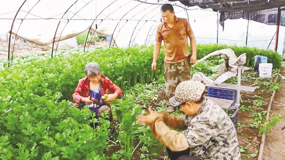 日前,记者走进村民于向阳家的蔬菜大棚,眼前鲜嫩的芹菜绿油油一片,挂果的作物长势喜人,蔬菜瓜果散发的清香扑鼻而来。于向阳一边采摘上市的蔬菜,一边告诉记者:“大棚种植蔬菜经济效益高,一年可以采摘二到三茬,比大地种植收入要可观的多。我现在采收的是第二茬芹菜,马上要送往附近的批发市场。一个大棚一年下来大概能收入1.5万元,我打算带动更多的农户参与到大棚种植中来,让大家共同致富。”于向阳家的蔬菜施农家肥,一上市销售就供不应求。