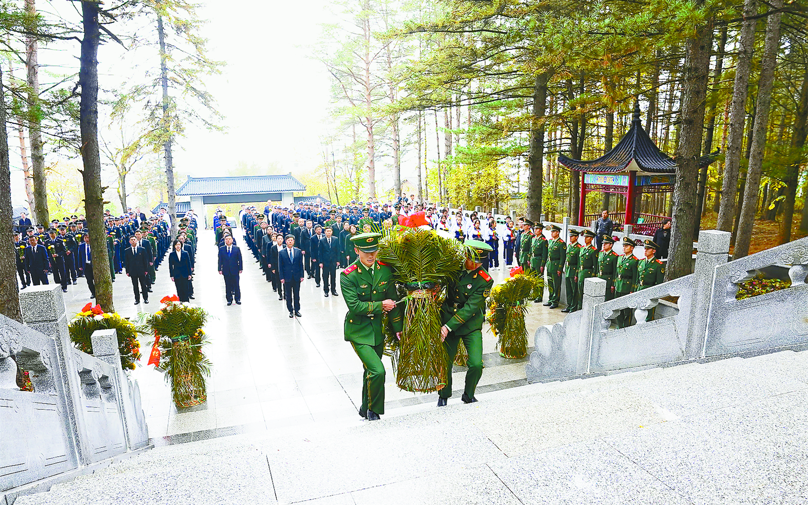 9月30日,伊春市暨伊美区烈士纪念日敬献花篮仪式在伊春烈士陵园举行。