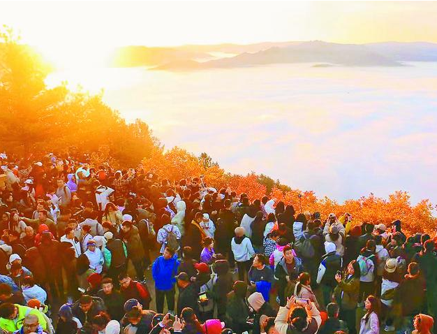 本报讯(见习记者 王思懿)空谷千里翻波浪,日出云海映霞光。连日来,我市旅游市场火爆,各大景区游人如织,全国各地的游客被林都伊春的秋色吸引,纷至沓来。金祖峰顶观云海看日出,也成了游客打卡之地。据了解,从中秋十一假期至今,金祖峰景点共接待游客4.5万人。