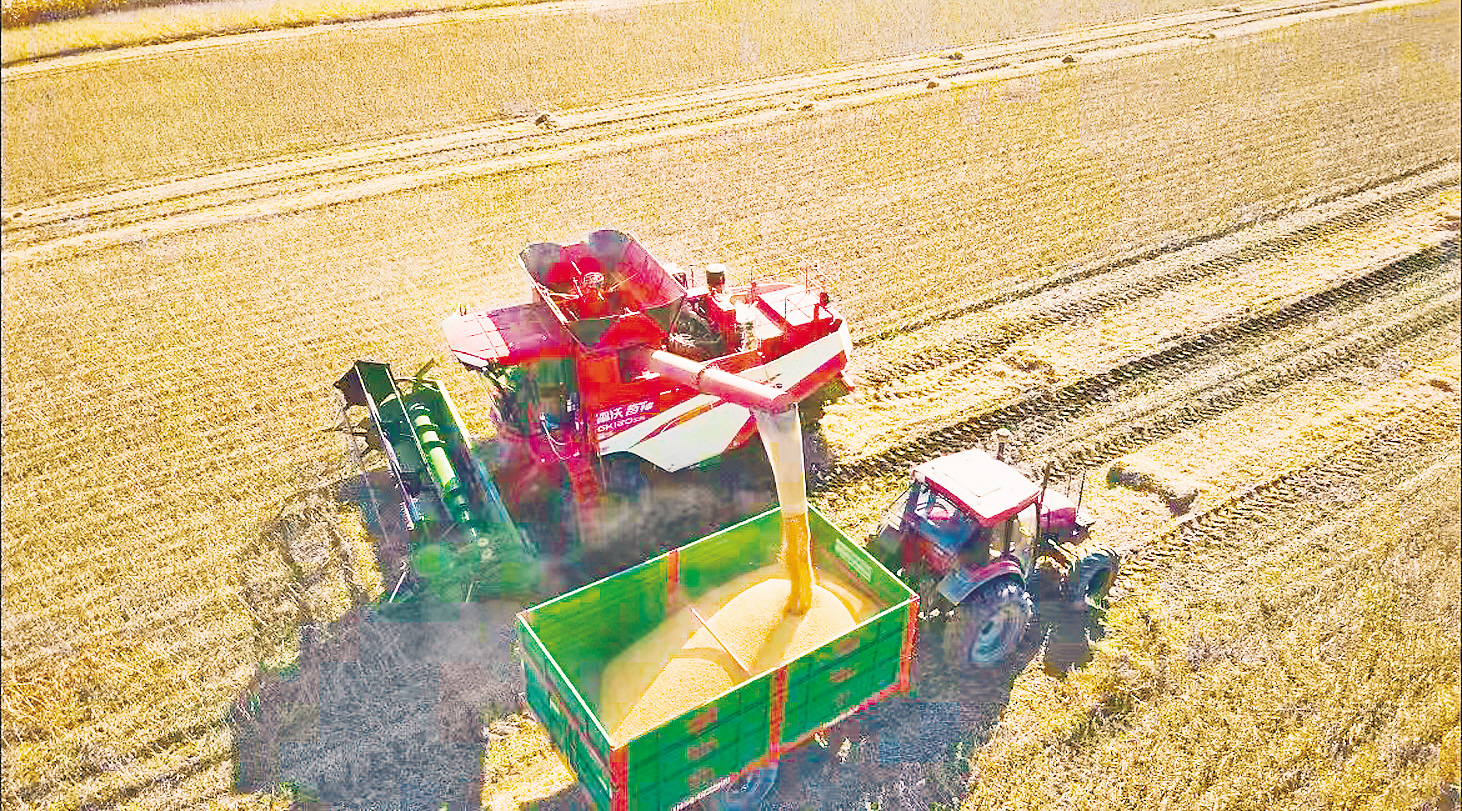 图为大豆收割现场。