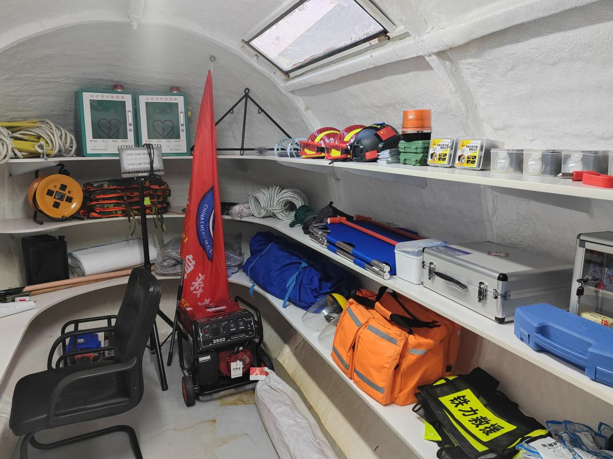 应急救援站内部,各类救援物品摆放整齐。
