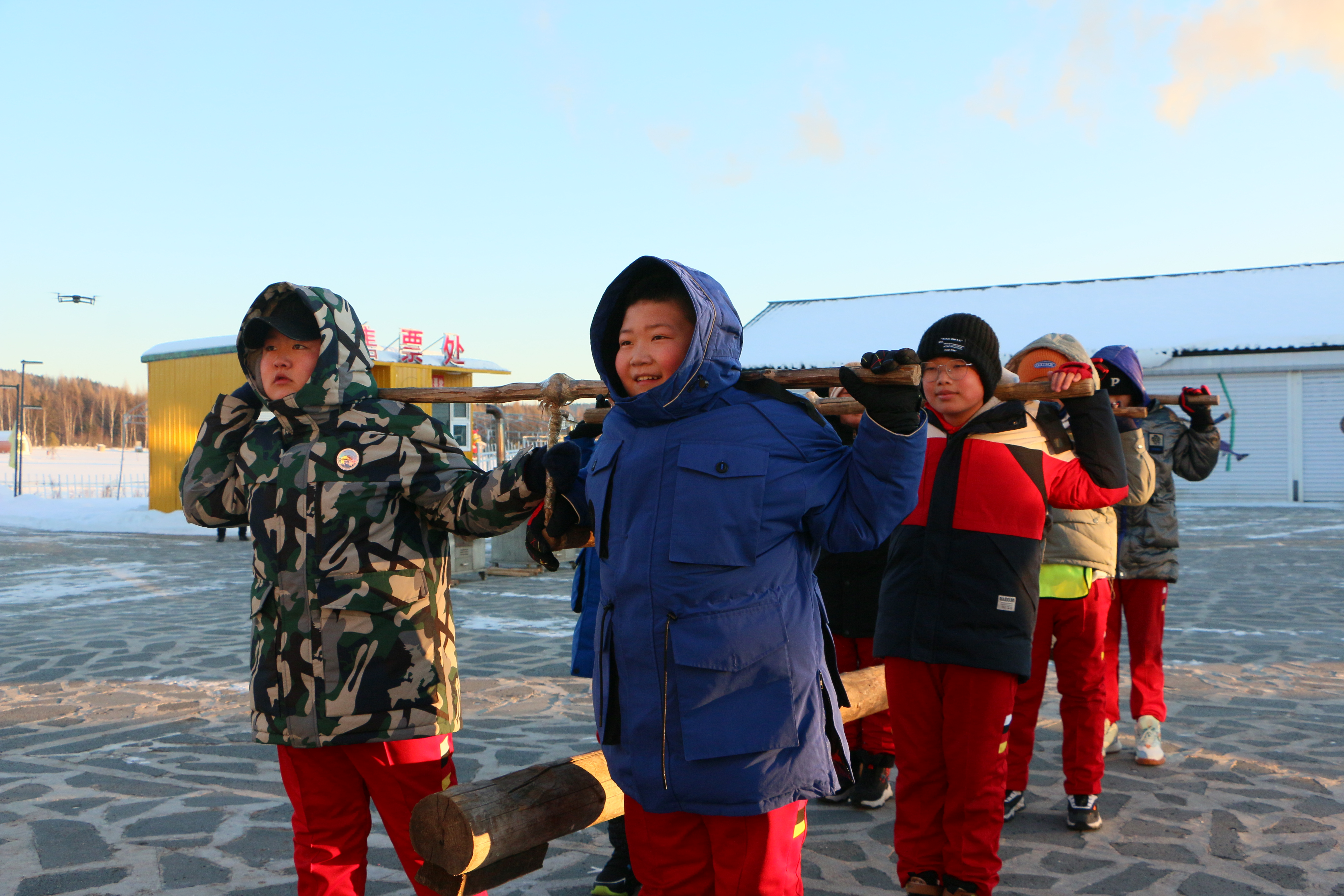 研学现场,孩子们正在响亮地喊着森林号子,体会着林区工人伐木的团结精神。丰林县红星小学德育校长马云华告诉记者,“这期研学实践活动,自在乡里研学基地根据学生的年龄、特征以及冬季天气等因素,为孩子们设置了森林号子、东北农俗实践体验课堂和大豆课程。通过这些课程的学习,孩子们拓展了知识面,开阔了视野,丰富了生活。让孩子们在实践体验中感受林都伊春独特的风土人情和文化底蕴。”