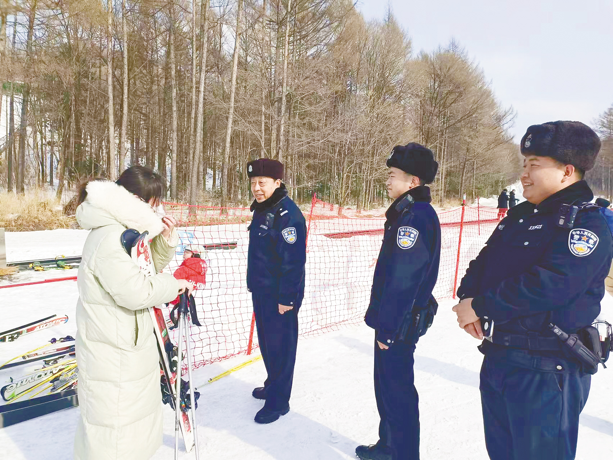 春节期间,铁力日月峡滑雪场迎来了高峰,日接待省内外游客高达800余人次。为保证游客安全,铁力市公安局日月峡派出所对日月峡滑雪场开展常态化护游工作,全面加强对景区重点区域、人员密集场所的巡逻防控,对机械设备和消防设施进行检查,为人民群众的生命财产安全保驾护航。