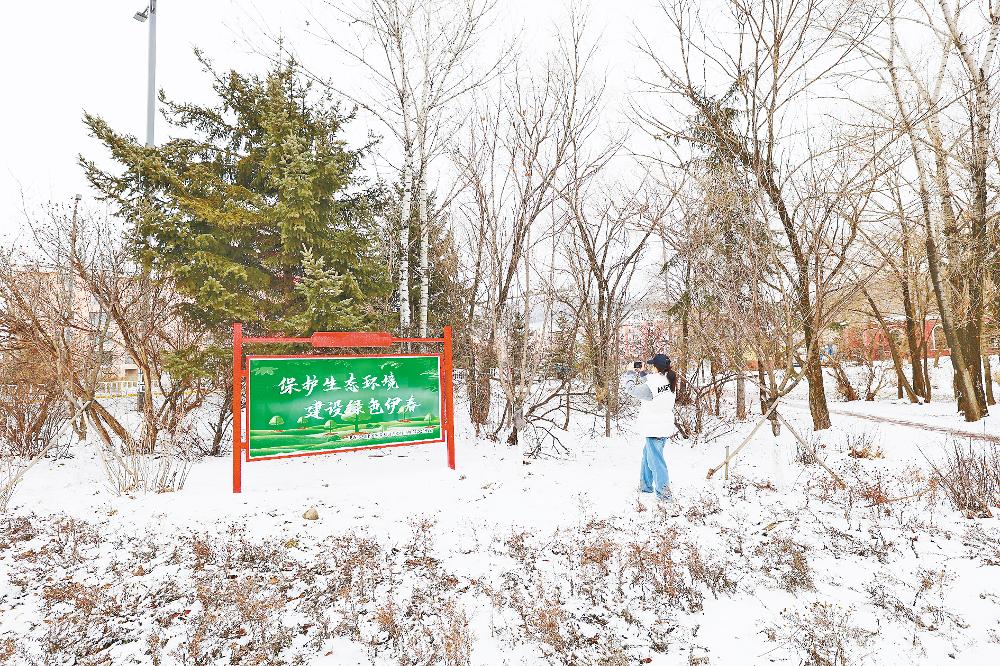 一场春雪,为林都伊春披上了冬季的色彩,市民纷纷走出户外拍照留念。