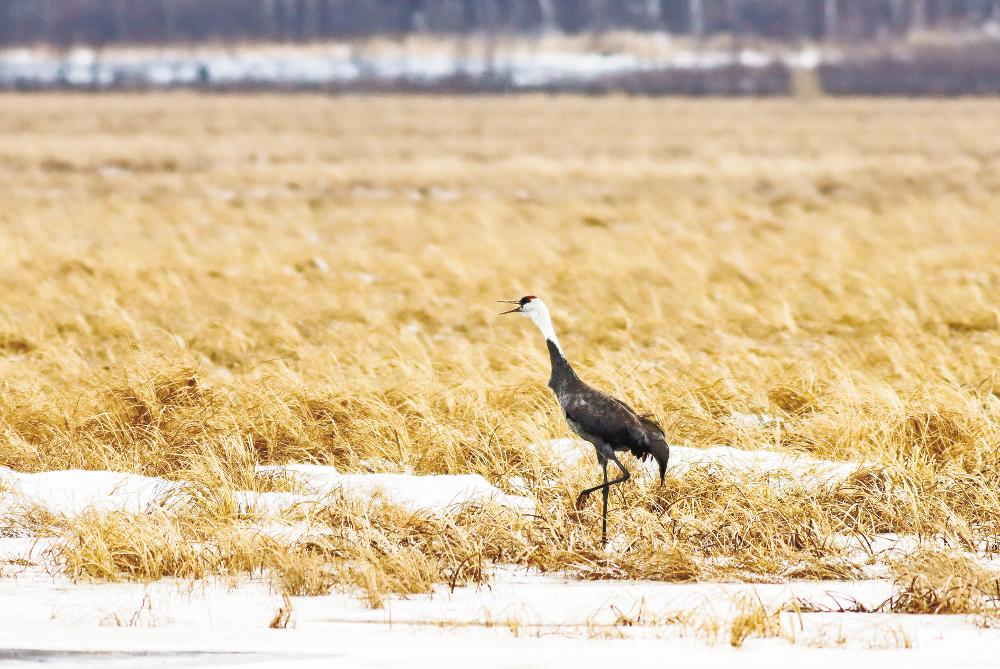 新青国家湿地公园迎来今年首只回归的白头鹤