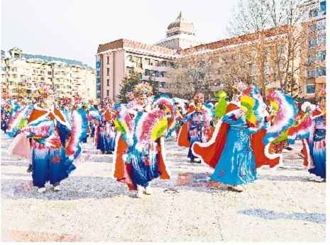 候场期间,前来参加活动的市民、游客们渐渐将广场边的空地挤满,秧歌表演者们也相继为观众们舞动起来。大箐山县表演者们身穿的红色大花袄尽显东北特色;嘉荫县秧歌方阵前“四大才子”造型的表演者摇着折扇走起四方步也是憨态十足;南岔县的舞龙队随着音乐节拍摇起手里的龙头绳,条条“彩龙”上下翻腾……铁力市文广旅局局长王甲男说:“我们铁力市带来了一百多人的民俗表演队伍,还有两辆独具特色的花车,准备给市民和游客开启一场东北民俗的表演盛宴。”