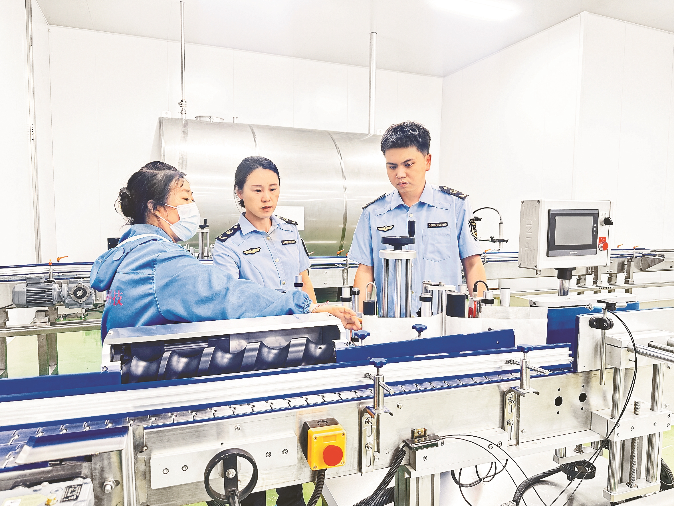 市市场监督管理局经济开发区分局工作人员深入尚桦生物科技有限公司,开展“一对一”精准帮扶。林琳 摄